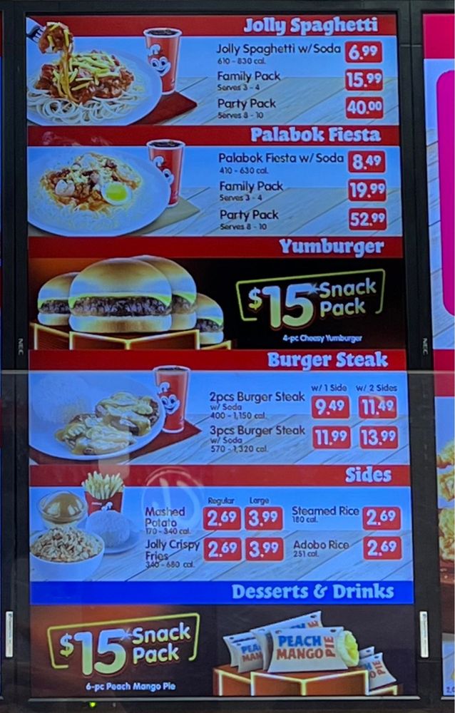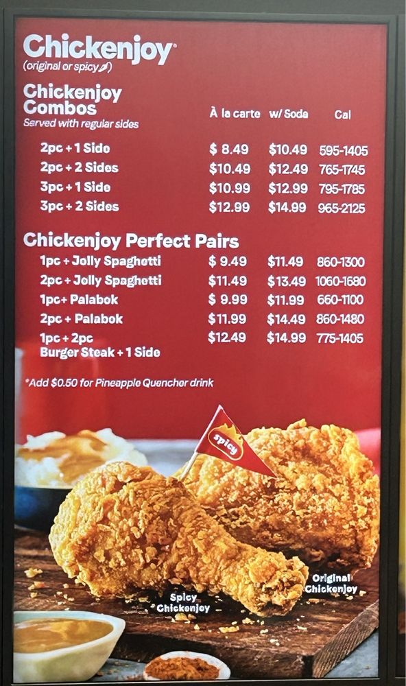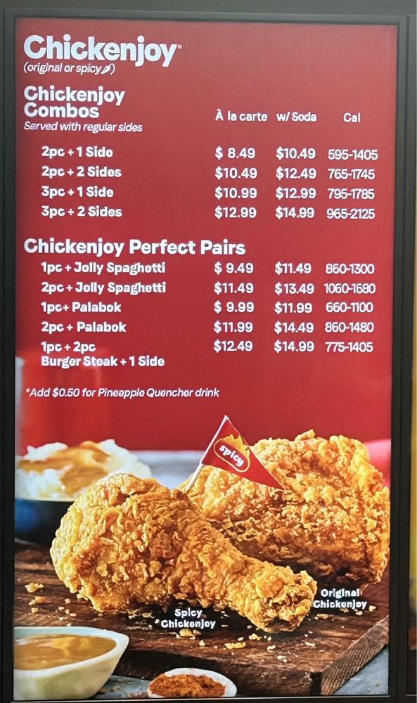 With prices that cater to all appetites, Jollibee offers delicious meals that don’t break the bank. A 1pc Chickenjoy w/ Jolly Spaghetti and Drink combo is only $14.36, while larger portions are reasonably priced, making indulgence accessible.